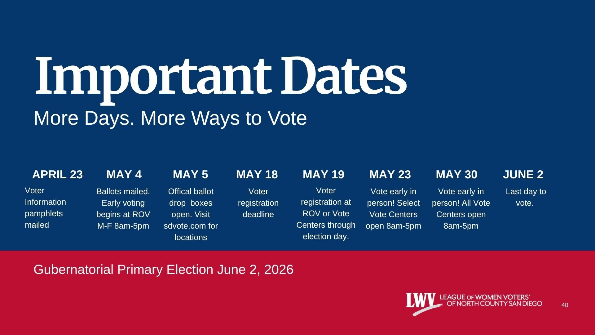 P.O. Box 131272 Carlsbad, CA. 92013-1272 email: webmasters@lwvncsd.org phone: (760) 736-1608
